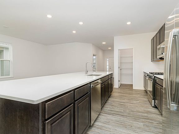 EXTRA LARGE LOT! This EI Dunbar model includes vinyl sheet floors in the living/kitchen/dining space, that is open and melded together perfectly. The island in the kitchen is gigantic and can fit a large amount of seats and the kitchen is perfectly laid out and includes the microwave, dishwasher & range. The master suite can fit a large bed and includes its own bathroom with quartz counters, two sinks, a walk in shower and a large walk in closet. The 2nd bathroom and bedroom are towards the front of the house and this great unit also includes laundry room in the hall by the garage. The large family room has backyard access. The owners suite features a roomy walk-in closet and private bathroom. Includes a smart video doorbell, smart lock & smart thermostat! *Photos of Previously Built Home, please inquire for details*