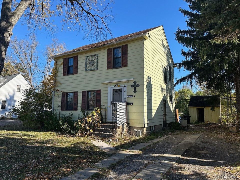 Opportunity knocks!! Huge potential!! 3 bedroom 2 full bath colonial on a deep (139') lot that backs to large open undeveloped area at a really great price!! Price reflects needed repairs and or updates. Being sold strictly as-is...seller will do no cleanout nor any repairs. Living room with stone face fireplace and coved ceiling. Hardwood floors. Lower bath with acrylic tub surround and L shaped vanity with seated area. Ceramic upper bath with builtin linen closet/drawers. Formal dining. Large shed. Oak kitchen. Furnace and HWH appear newer. Washer & dryer included. No FHA or VA offers please. All sizes shown are strictly estimates. Information contained in this listing is deemed reliable but not guaranteed......buyer or buyer's agent to verify all information. Seller will not consider offers where purchaser has not viewed the property first. Taxes are currently non-homestead but will be rated at a lower millage for an owner occupant buyer. Owner is a licensed broker in the state of Michigan. A licensed agent must be physically present for all showings…NO EXCEPTIONS.