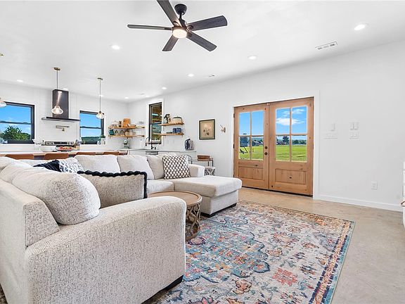 Welcome to your dream barndominium retreat—built in 2023 & set on 7+ acres with breathtaking views of Pea Ridge Military Park. Colorful sunsets & a sky full of stars greet you every night. Inside, this 3-bed/ 2-bath home blends modern comfort w/ country living. Soaring ceilings & large windows fill the home with light, highlighting the open-concept layout. The kitchen is made for gathering, with a massive butcher-block island that seats 8—perfect for entertaining. The living Rm features a sleek linear fireplace w/ built-ins, adding warmth & style. The primary suite offers an oversized walk-in shower, with a closet that connects to the laundry Rm for convenience. Step outside to a huge covered porch, ideal for barbecues, morning coffee, or simply soaking in the views. Built w/ fiberglass ceilings, foam board insulation/ 6” rock wool walls, this home offers excellent efficiency- & A 4-car garage provides space for vehicles or hobbies. You won't want to miss this well-built home on land that offers peace & privacy