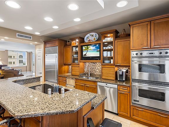 From your living room or oversized lanai, take in unforgettable sunsets and daily views of yachts navigating in and out of the 186-slip marina with direct Gulf of Mexico access.