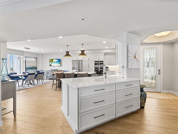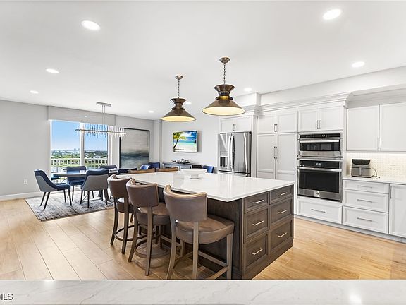 BREATHTAKING VIEWS OF THE RIVER AND DOWNTOWN FORT MYERS ARE YOURS!! RARE OPPORTUNITY – TWO UNDER-BUILDING PARKINGSPACES INCLUDED! Perched on the 9th floor of The Shores III, this rarely available Danbury end-unit offers 3 bedrooms, 3 baths, and 2,660 sq.ft. of refined high-rise living. With two elevators serving the unit and two deeded parking spaces, convenience meets exclusivity. Step inside todiscover panoramic views of the Caloosahatchee River, golf course, lakes, and even Downtown Fort Myers. The wraparound lanai and multipleprivate balconies—one off the guest suite and another off the family/dining room—flood the home with natural light and provide unmatchedoutdoor living space. The remodeled 2022 kitchen is a showpiece, featuring quartz countertops, a massive gathering island, induction cooktop,custom cabinetry with under-cabinet lighting, and sweeping river views. Recent upgrades also include new tile flooring throughout the mainliving areas and fresh interior paint. The oversized primary suite showcases breathtaking river views, a spa-style bath with soaking tub, walk-inshower, and expansive walk-in closet. A second bedroom features its own ensuite bath and balcony, while the third bedroom sits next to a fullbath—perfect for guests or a home office. Additional highlights include: Hurricane roll-down shutters Private storage locker Two deeded under-building parking spots (rarely available!) Shores waterfront pool access LIMITED TIME – Sports Membership Joining Fee Reduced by $32,000!Secure a Gulf Harbour Sports Membership for just $20,000 while this promotion lasts. Private memberships are available for golf, tennis,fitness, and more. Gulf Harbour’s 186-slip deep-water marina offers slips for purchase or lease—an ideal complement to this luxury lifestyle. Besure to watch the two videos showcasing the condo and marina!