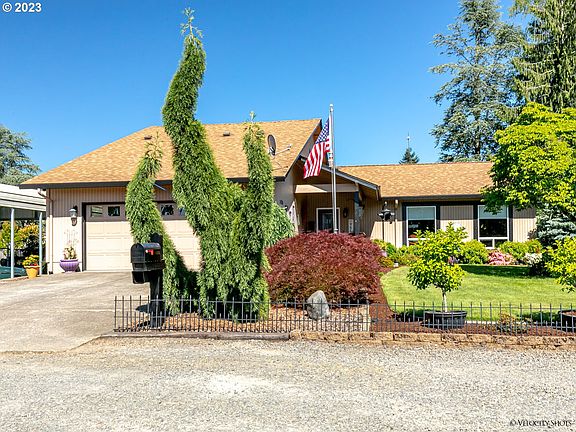 Nice one-level home with upstairs bonus room, on a spacious .68-acre lot with RV cover and shop, located on a dead-end road. 3 bedrooms, 2 baths, 2,322 square feet. Vaulted ceilings in the formal living room, family room and kitchen. Kitchen has ample space and storage along with a center island. Family room has a gas stove and access to the cover patio and back yard. The exterior of this property is impeccably landscaped, the beautiful backyard with a covered patio and a patio, water feature. Stunning koi pond and cascading waterfall, creating a tranquil retreat right in your own backyard. A small tool shed with a lean-to provides extra storage for your outdoor essentials. That's not all! A remarkable 1,200 (30x40) square foot Web Steel building awaits, complete with oil heat, a car hoist, power, and a concrete floor. Hard-to-find RV parking with a cover.