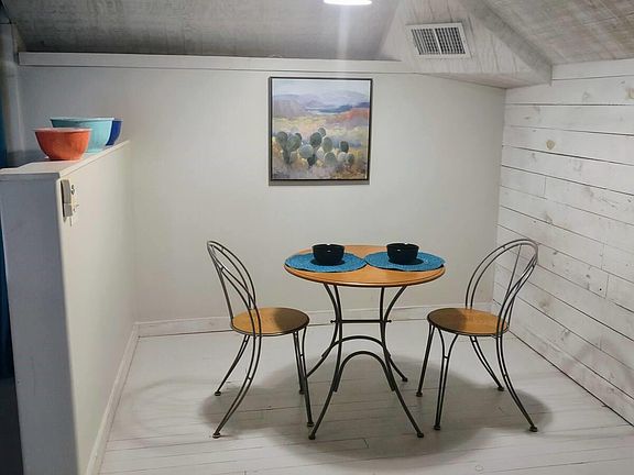 Available after December 31. Near downtown Medina on Hwy 16 between Banderad and Kerrville. This upstairs apartment is completely furnished with one bedroom and separate bathroom. The living area is open with a full kitchen including electric oven/range, refrigerator, microwave, double sink and counter space and drawers. A comfortable living area with internet connected TV and currently furnished with reclining seat coucn. Room for a small dining table. The apartment is completely separated from the four bedroom house downstairs and has separate electric and hot water system. Access to the apartment is with an outdoor stairway not part of the downstairs. Shared washer/dryer structure is outside of the house. Plenty of parking behind the house itself. Maximum two person rental because of tenants downstairs. Small deck at the top of the stairs provides beautiful evening sunsets. Month to month or longer term lease available.