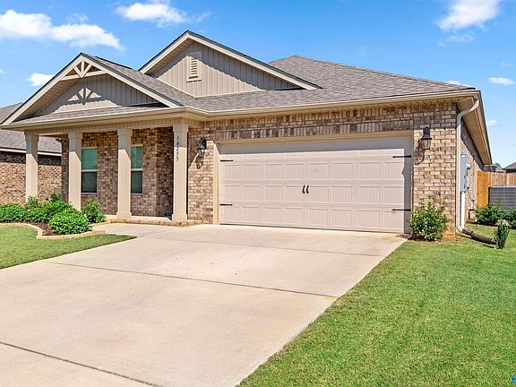 Welcome to this 4BR/3BA bungalow with an open floor plan and 2-car garage in The Links at Canebrake. Just minutes to I-65 and Hwy 72, the community offers a pool, cabana, and playground. Inside, three bedrooms, two baths, a large storage closet, and laundry room greet you before opening into the bright main living space with vinyl plank flooring, crown molding, recessed lighting, and a cozy gas fireplace. The kitchen features a granite island, Whirlpool appliances, walk-in pantry, and dining area. The isolated primary suite includes a walk-in closet, quartz counters, soaking tub, and separate shower.