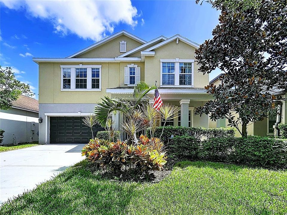 Welcome to the Enclave at Boyette — a premier gated community offering luxury living and natural tranquility! This stunning two-story, 5-bedroom, 3.5-bathroom home sits on a premium homesite backing up to the Fish Hawk Preserve, ensuring peaceful conservation views and no rear neighbors. With 3,777 sq. ft. of thoughtfully designed living space and a 3-car tandem garage, this home truly has it all! Step inside to find high vaulted ceilings, elegant 18x18 ceramic tile flooring throughout the first floor, and a First-Floor Primary Suite featuring new luxury flooring. The spacious primary retreat includes an ensuite bath with a spa tub, walk-in shower, split vanities, private water closet, and a massive walk-in closet. The beautiful gourmet kitchen boasts granite countertops, 42" staggered espresso cabinets with crown molding, a large island, butler’s pantry, and ample counter space — perfect for both everyday living and entertaining. A formal dining room is conveniently located off the kitchen, ideal for hosting holiday gatherings. Upstairs, you’ll discover new luxury vinyl flooring throughout the living areas featuring an oversized bonus room — perfect for a game room, home theater, or play space — along with four spacious bedrooms, each featuring walk-in closets, and two full bathrooms with tile flooring. For added convenience, this home offers TWO laundry rooms — one on the first floor for the primary suite and another upstairs —BOTH with washers and dryers included! Relax and enjoy Florida living on the extended screened-in and pavered lanai, overlooking the serene conservation area. The 3-car garage is a mechanic's dream come true with CUSTOM wall panels for organized tool storage and overhead shelving for maximum space. Floor plans for both floors can be found in the photos. Additional highlights include NO CDD fees, a LOW monthly HOA, and access to fantastic community amenities including a dog park, grounds maintenance, and recreation facilities. Zoned for top-rated schools — Barrington Middle and Newsome High — and conveniently located near shopping, dining, and easy access to US-301. Experience luxury, privacy, and convenience — all in one exceptional home! Schedule your private showing today!