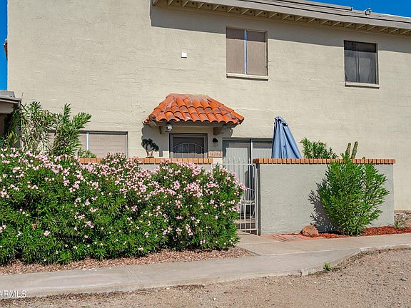 $10,000 to BUYER for closing cost or down payment.Fountain & Mountains-no one above no one below. Beautiful Townhome Open Concept travertine floors, Kit. granite countertops to include custom sitting bar.Upgraded stainless appliance package to include upgraded refrigerator-in home wash/dryer included.Shutters. Bath down has a collapsible accordion door - everything upgraded and beautiful. Kit. has a extra 15 ft of upper and lower cabinets.Elegant Stairs w/travertine risers and solid wood leads to a nice size landing enough room for a desk. 2 bedrooms upstairs-Very large master has 2 closets one step in closet. Enclosed carport with storage and another refrigerator. Pool steps away and grass area. Seller to pay $10,000. towards buyer closing to use for whatever they want.