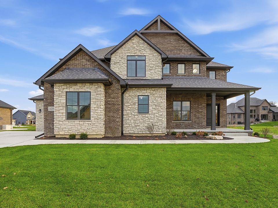 Brick and stone exteriorCovered front porchQuartz countertopsDual walk-in closetsMudroom with built-in benchLarge covered patioStainless steel appliances