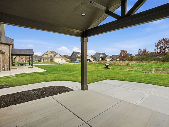 Discover refined living in this stunning new construction home in the highly sought-after Castle Rock Subdivision. This thoughtfully crafted two-story design combines elegant finishes, modern comfort, and exceptional functionality for today's lifestyle. Step inside to find rich hardwood floors, a warm and inviting gass fireplace set against a brick surround with a wood mantle and stone hearth, and a convenient office just off the foyer-perfect for work or quiet retreat. The spacious great room flows effortlessly into the breakfast room, where sliding glass doors open to a large covered patio overlooking the beautifully landscaped yard with full sod and flower beds. The kitchen features a large kitchen island, quartz countertops, tile backsplash, stainless steel appliances, and a generous walk-in pantry-a perfect balance of beauty and practicality. Upstairs, the Primary Suite is your personal getaway, complete with a soaker tub, custom-tiled walk-in shower with glass door, and dual walk-in closets, including one that spans an impressive 8' x 13'. The second floor also offers a laundry room with washer, dryer, and sink, plus three additional bedrooms, and a full bath. A mudroom with built-in bench, lockers, and closet keeps daily life organized, while the oak staircase with custom railings adds architectural charm. The full unfinished basement is plumbed for a future bath and ready for your ideas. Outside, enjoy timeless curb appeal with a brick and stone exterior, covered front porch, concrete driveway, and professional landscaping. Dual garages with epoxy floors -a 2.5-car and a 1-car with extra storage-provide plenty of parking and storage. With no HOA, this home offers freedom and convenience in a prime St. John location close to parks, shopping, dining, and just minutes from the Illinois border. Professional pictures coming soon!