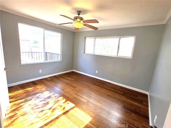Remodeled 4 bedroom, 2 bath house one level home. It's the front house with large front yard with fruit trees. Sunny living room with Bamboo hardwood floors throughout the home. Kitchen is sunny & bright with granite counter tops, natural stone floors and room to sit at the breakfast bar, large farmhouse sink, lots of cabinets and a pantry. Big remodeled Hall bathroom, with shower & tub combination. Remote controlled ceiling fans in all 4 big bedrooms, big Master bedroom with French doors that lead out to a large deck. Master bath is newly renovated with marble floors & tub area. Central heating & air, washer, dryer connections and 2 dedicated parking spots at the rear of property.