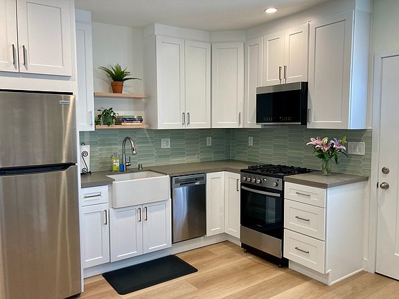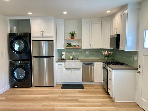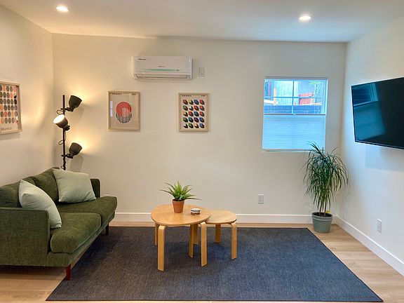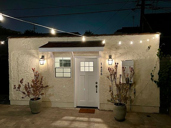 This brand new fully furnished one-bedroom, one-bath ADU offers a seamless combination of Spanish style charm and modern amenities. The kitchen is fully equipped with brand new appliances (refrigerator, dishwasher, microwave, gas oven range) and features stunning quartz countertops and a farmhouse sink. In the bathroom you'll find an artisan tile glass shower, sleek gray hexagonal tile floors, and a stylish double vanity. Additional amenities include: 2 split A/C systems, in-unit washer and dryer, wall-mounted 50" flat screen TV, ample indoor and outdoor storage, and a private landscaped yard complete with comfortable patio furniture. The unit sits tucked away behind a charming duplex all units on the property enjoy their own individual yard space for relaxing and entertaining.