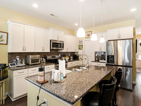 Functional kitchen areaSpacious walk-in pantryLarge island with sinkTile backsplashOffice flex spaceDining areaCul-de-sac location