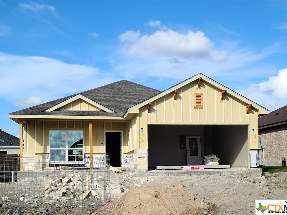 Grab this one and you might be in by Christmas! This rustic style home that lives large with an open floorplan, features a lovely upgrade front door, ceramic tile floors and high ceilings. Custom cabinets, granite, ceramic tile, island and stainless appliances are highlights in the kitchen. The owner's suite bath is spacious and consists of a deep cultured marble garden tub, separate ceramic tile shower with glass wall and glass door, double luxury height vanity and walk in closet. Builder includes full yard grass sod, privacy fencing and full yard inground sprinkler system. This builder will pay $6000 of your closing costs plus your title policy and survey (approx another $2000)! Use your $6000 any way you want - even use some to pay points or buy down your rate!