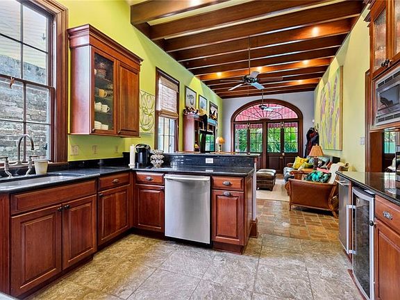 Vivacious Victorian in Vibrant Marigny Triangle! This historic side-hall features an impeccable renovation with a custom wood paneled living room, pocket doors, crown molding, and exposed beams. Smart floorplan has spacious room, large primary suite, and open concept kitchen and den. Step outside to your secluded oasis with large, crystal blue pool, hot tub, and awning covered red brick patio. Great location steps to the French Quarter, Frenchmen Street, and Rampart Streetcar! Gated parking for 2 cars!