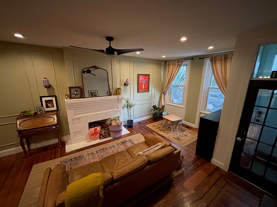 On the first floor, you'll be greeted with an open concept living space with restored original wood floors, fireplace, and plenty of windows providing natural light. From there, enter into a beautifully renovated chefs kitchen which includes a 48inch gas range with double oven, large island with plenty of prep space, extended cabinetry, dishwasher, large 33 inch sink, garbage disposal, coffee/bar nook, beverage fridge, and dining area. First floor conveniently includes a laundry area with utility sink, half bath, and storage cabinetry. From the laundry room, enter directly onto a private wood deck with surrounding fence.