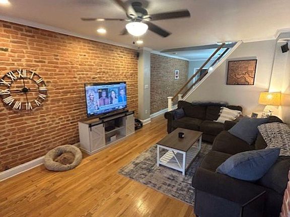 Outstanding Location! Walk to the baseball and football stadiums. Close to shopping. Walk into the large living room with hardwood floors, brick wall, newly painted walls, ceiling fan and plenty of recessed lighting. From the living room there is a separate dining room with a new light fixture, hardwood floors and brick wall. Off the dining room is a newly renovated half bath. Also off the dining room is the entrance to the lower level which has high ceilings and could be finished off for extra living space. The large kitchen off the dining room has been completely renovated with new cabinets, new appliances and quartz countertops. The sliding glass door leads to a private back patio where you can relax and enjoy your morning coffee or a glass of wine in the evening. Upstairs there are two bedrooms each with their own full bath. The primary bedroom has hardwood floors, closet and new shower stall in the bath. The second bedroom has carpet, closet and bathroom. Off the second bedroom is a door to the roof which used to have a roof top deck. In addition to the updates already mentioned, there is a new heat pump, newer roof, and a new washer and dryer. Ready for the new homeowner to move right in.