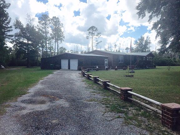 Well kept 2+ acre gated 3BR/2BA home. Home features large bedrooms with walk-in closets. Open kitchen includes an abundance of cabinetry with an island and pantry space. Formal dining area and a large living room with fireplace. The master bedroom features bath with a double vanity, garden tub and separate walk-in shower. Perfect office area with built-in desk which leads to laundry room. Outside space includes fenced in yard, water fountain, closed in back porch with hot tub, storage shed, and above ground pool. Detached two car garage with additional space that will accommodate 18 ft. pontoon boat and open detached building in the backyard perfect for boat storage. Property sold as-is package deal with adjoining lot.
