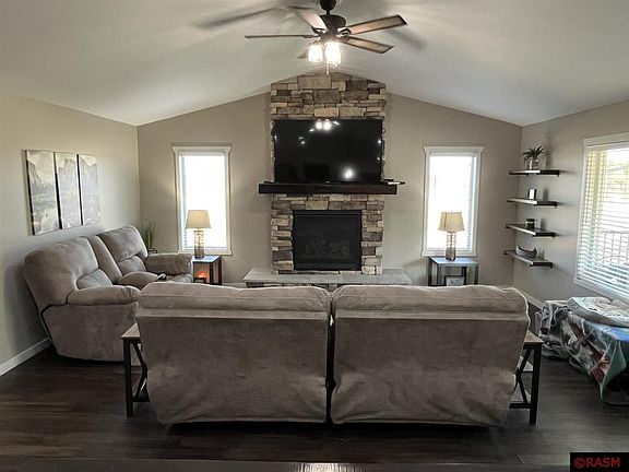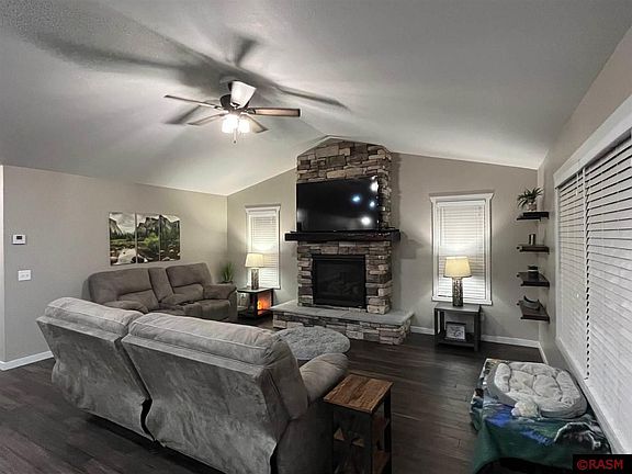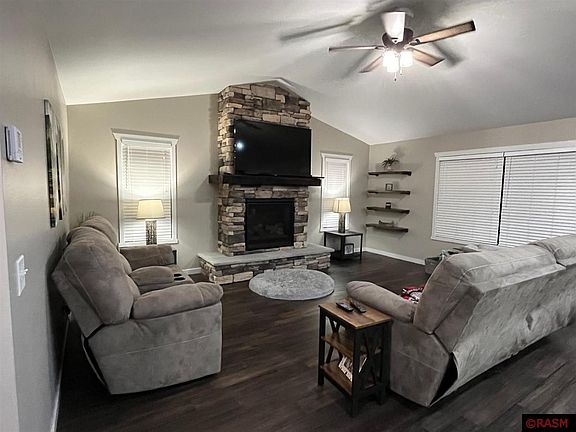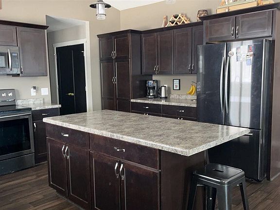 5 Bedroom 3 Bath home with many features! As you walk up you will notice the large 6' x 48' covered porch. Perfect for morning coffees, afternoon drinks and evening wildlife observations! Upon entering you will notice the open floor plan accented with the floor to ceiling fireplace with mantel and wall TV mount. The vaulted ceiling opens up the kitchen. The 6' island is great for congregating and meal prepping. Main floor laundry is just off of the kitchen with extra cabinets and broom closet for storing the central vacuum accessories. The primary suite is spacious featuring a large walk-in closet and 3/4 bath with Onyx double bowl sink. The second bedroom, a full bath, and a linen closet wrap up the main floor. The basement has a very large family room, 3 more bedrooms and another full bath. The mechanical room has space for storage. Need more? The triple attached garage is finished off and includes a REZNOR heater and upper racking for all your garage storage needs. There are controlled outlets in the soffit on the porch for string lights, turn them on with the flick of a switch inside the house. Call to schedule your private showing! Inclusions: Central Vacuum unit and accessories, Reverse Osmosis System, Wall shelves in living room, storage racking in garage. **Owner Agent**