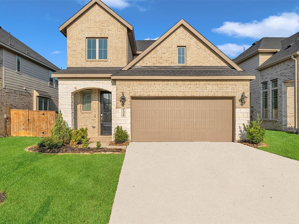 Nearly new Village Builders home built in 2022. Two-story, 4-bedroom, 3.5-bath, 2-car garage, and spacious backyard. Smart layout features a downstairs primary suite with a private bath and a 2nd bedroom with its ensuite bath. Open-concept kitchen has granite countertops and overlooks the family and dining areas. Upstairs, you’ll find two more bedrooms, a big game room, a full bath, and a media room. Woodtrace is a gated master-planned community with a scenic pool and clubhouse, party space, and bath facilities, plus a 23-acre lake for fishing or kayaking with a dock. There are 5 miles of paved jogging and walking trails, playgrounds, and a warm, family-oriented vibe. Located within the top-rated Tomball ISD.