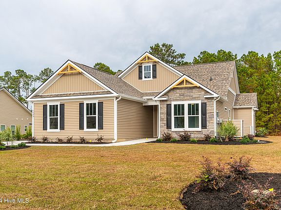 Are you looking for a new home with tons of details and craftsmanship? Look no further! Fox Homes, a local custom builder, will be building this 3 bedroom/ 2 bathroom 1895 sqft Craftsman style home in the gated golf community of Brunswick Plantation. The exterior of the home will have stonework accents and a side loading garage for exceptional curb appeal. With this open floor plan, you will find 9-foot+ ceilings throughout, along with a vaulted ceiling with wood beams in the open concept kitchen, living and dining area, along with tray ceilings in the master bedroom, and foyer. The home will feature built-in cabinetry and crown molding throughout, as well as, custom wainscoting in the entryway and great room. Your kitchen will boast custom cabinetry, quartz countertops, subway tile backsplash and a nine-foot island. The large master suite includes an oversized walk-in closet with built-in shelving. The en-suite master bathroom will feature an oversized shower with floor to the ceiling tile, water closet, and double vanities with granite countertops. Enjoy your late afternoon on the screened in back porch. The laundry room and mud room are situated off the 2 car garage will have a drop zone bench for convenience. The homeowners of Brunswick Plantation enjoy many amenities, such as both indoor and outdoor pools, a hot tub, fitness center, and tennis and pickleball courts. Located close to the restaurants and shopping of downtown Calabash, you are minutes to Sunset Beach and close to the SC border and all the attractions of the Myrtle Beach area. *Photos are of a model home and are for illustration purposes only. Features and options may vary.