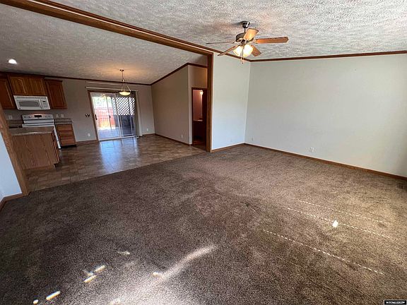 This Property is Marketed "With Repair." Welcome to this beautifully designed 3-bedroom, 2-bathroom single-level home that perfectly blends comfort and functionality. Situated in a desirable neighborhood, this residence features an open floor plan that creates a seamless flow between the living, dining, and kitchen areas—ideal for both everyday living and entertaining. You will especially appreciate the massive oak kitchen with large center island that can be used for both seating as well as prep space. Once you step inside you will be greeted by vaulted ceilings that enhance the sense of space and natural light throughout the home. The large kitchen is a chef’s dream, offering generous counter space, ample cabinetry, and a convenient layout perfect for gatherings or quiet family dinners. The home also boasts a 2-car garage that is finished and insulated. Located on the back of the home is a very large covered deck, 2 storage buildings including a storage shed, and extra parking area with a gate off pure gas road. Whether you're a first-time buyer, downsizing, or looking for your forever home, this property has everything you need on one easy-to-navigate level. Don’t miss this opportunity to own a home that truly checks all the boxes—schedule your showing today by calling either McKenzie Samuelson at 307-321-2191 or Skye Coleman-Weisz @ 307-851-0021.
