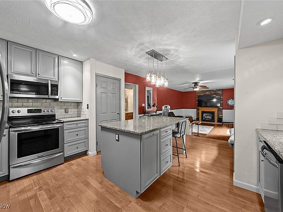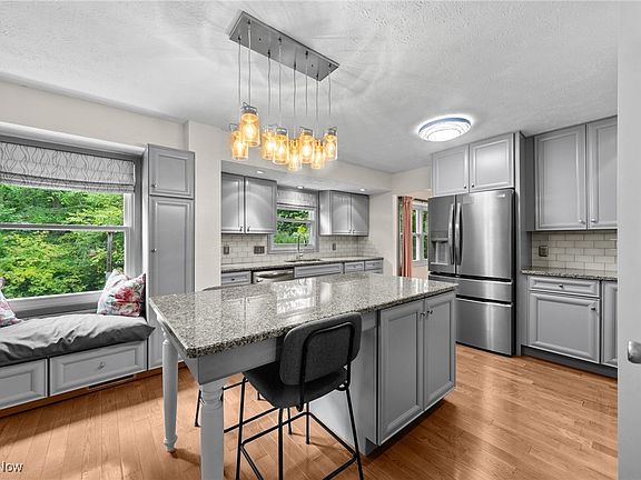 Charming 4 bedroom 2.5 bathroom center hall colonial. Guests are greeted with a large open concept dining room and family room. Fully remodeled kitchen with stainless appliances, stone counters, central eat-in island, and tile backsplash. A step down living room and updated powder room completes the first level. Primary suite with large walk-in closet and full bathroom. Second level laundry hooks up available in guest bedroom closet. 3 nicely sized bedrooms and a second full bathroom complete the upper level. 2 car attached garage with additional storage. Full footprint unfinished basement with laundry. Roof 2022. Kitchen remodel 2017 - New appliances from 2021-2025. Furnace 2018. Double pane vinyl windows throughout. Lovely lot with ample greenspace in both front and backyard. Please see listing agent for full list of improvements and average utility costs.