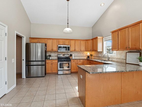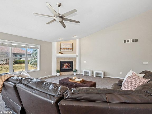 Rare find in Briar Crossing! It's not often that you see a home come on the market in Briar Crossing. Here is your opportunity! This 3-bedroom, 2-bath ranch features an open-concept design, the family room boasts vaulted ceilings, a cozy fireplace, and seamless flow into the kitchen. The large kitchen with ample cabinets space and high ceilings had a large island with bar seating, and a spacious dining area overlooking the patio and yard--perfect for entertaining! The primary suite offers a private retreat with an ensuite bath and walk-in closet, while two additional bedrooms share a full bath on the main level. Downstairs, the finished basement provides a versatile space for a second family room, office, or play area, plus a crawl space for extra storage. Freshly painted with new carpeting throughout, this home is truly move-in ready. Enjoy easy access to everything--shopping, dining, and an effortless commute to downtown Chicago. Don't miss this one!