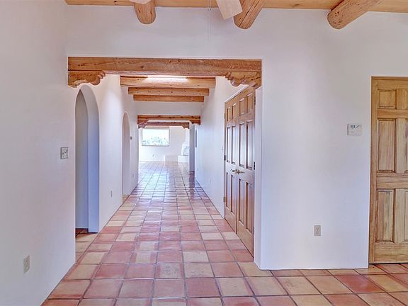 Very private home in the Weimer foothills sited on 1.25 acres of pinon and sage with wonderful views of Taos Mountain. This pueblo style home has 2,091 sq ft home with 3 bedrooms and 2 baths. Charming walled and gated front courtyard. Spacious entry with "office/study/sunroom" area. Gallery hall to the sunny kitchen, dining room and living room with great Taos mountain view and kiva fireplace. Sunset views from the walled courtyard and portal off the living room. Spacious bedrooms. Walk in Closet. Tile floors. Attached 2 car garage.