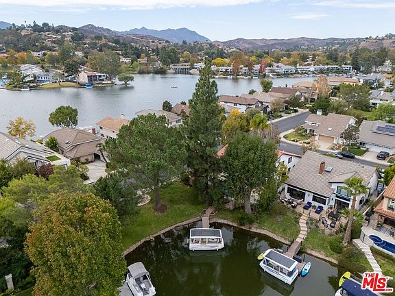 HUGE PRICE IMPROVEMENT - Nestled within the ultra-exclusive, 24-hour guard-gated enclave of Westlake Island, this impeccably renovated lakefront home offers both serenity and luxury, with breathtaking views and top-tier finishes. As you enter inside, you are greeted by an expansive open-concept design that blends modern sophistication with comfort. The home features gleaming hardwood floors, custom countertops, and a state-of-the-art kitchen outfitted with stainless steel appliances, recessed lighting, and a large central island perfect for both cooking and entertaining. The living space is further elevated by a striking dual-sided fireplace, which serves as a focal point between the family room, den, and formal living areas. Sliding glass doors seamlessly connect the interior to the outdoor pool area, offering picturesque views of the lake and surrounding natural beauty. The main floor also includes a generously-sized bedroom with a full bath, ideal for guests or multi-generational living. Upstairs, the primary suite is a true sanctuary, featuring dramatic vaulted ceilings and large windows framing stunning lake views. A spacious walk-in closet provides direct access to the main suite's luxurious bathroom, complete with all the finest finishes. The bedroom itself boasts its own private fireplace, adding warmth and ambiance to the room. In addition to the primary suite, the upper level offers two additional bedrooms, as well as a versatile office or den that can easily be adapted to suit your lifestyle needs. Outside, the home includes a private dock, where you can launch your electric boat for a leisurely sail around Westlake Island or head over to the nearby Landing, where a variety of upscale restaurants, shops, and cafs await. This home represents a rare opportunity to own a piece of paradise in one of Southern California's most coveted communities where lakefront living meets modern luxury.