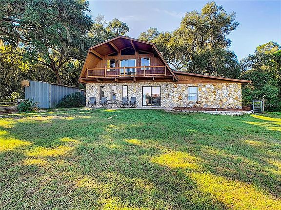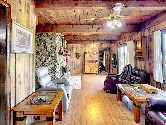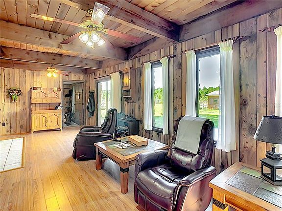 Location! Location! Location! A beautiful farm house on 5 gorgeous acres of land. You will feel like you are in the country but you are only 15 mins from Leesburg and The Villages. Inside you will find warm wood paneling and wood beamed ceilings throughout. Huge stone fireplace. The kitchen and baths have recently been updated. Breathtaking views from your master bedroom balcony. The outside feels very private and there is plenty room for the critters! There is a two stall barn, tack room and a farm tractor with attachments so your ready to go. Come and see that you are home!