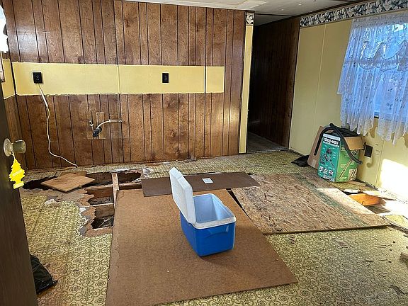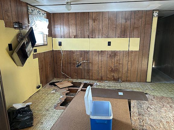 This property offers a 7,000 sq ft fully fenced lot with a large detached garage and an older trailer home. The trailer is a project and will need significant work or removal for a new build. Remediation was started but not completed in the kitchen area. The roof has a leak along the west-side seam and the hot water heater is not currently functioning.