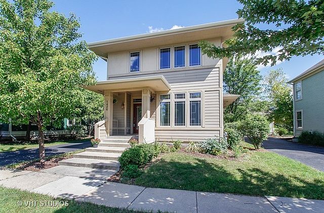 Rarely available Frank Lloyd Wright inspired Brooks model in this acclaimed residential "green" community. This home is move in ready. Large kitchen with island, cherry wood cabinets and ss appliances. Laundry room off the kitchen with back door to a fully fenced yard with brick paver patio. Yard backs to park area. 3 good sized bedrooms and a fully finished lower level with bathroom rough in. Beautiful rectilinear casement windows add to the elegance of this home. New Roof 2016, Sump Pump & back up 2014, Ejector pump 2015, Radon mitigation system 2012. yard fence 2016, carpet 2012. Two car detached garage.