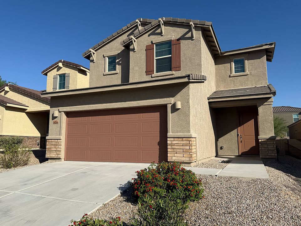 Welcome to this beautiful and spacious 3 bedroom, 3 bath home located in the desirable Rancho Del Lago community in Vail. Offering 2,694 square feet of living space, this home features oversized bedrooms, three full bathrooms, and thoughtful upgrades throughout. Enjoy the benefits of a reverse osmosis system, a whole-home water softener, solar panels for energy efficiency, and a built-in stone fire pit in the backyard perfect for evening gatherings. The kitchen includes a large island, pantry, and modern appliances, while the primary suite boasts a walk-in closet and double sink vanity. Additional amenities include a fenced yard, private patio, garage parking, and full-size washer and dryer. Nestled in this neighborhood that is just a short walk to the Rancho Del Lago golf course, this home is also located in the top-rated Vail School District. Call to schedule your tour today.