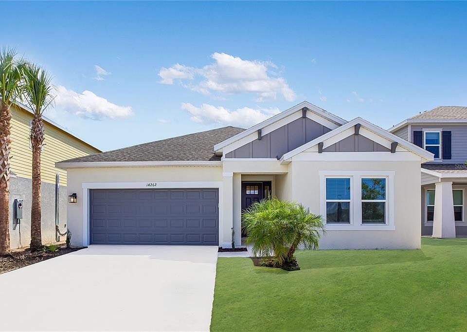New Construction - Ready Now! Built by Taylor Morrison, America's Most Trusted Homebuilder. Welcome to the Grenada at 14262 Sawmill Street in Firethorn. This spacious single-story design offers 2,394 square feet, including 4 bedrooms, a flex room, and open-concept living with tray ceilings throughout. The gourmet kitchen features a large island, step-in pantry, and flows seamlessly into the great room and dining area. Pocket sliders lead to a covered lanai—perfect for soaking in Florida’s beauty. The private primary suite boasts dual sinks, a large shower, and an oversized walk-in closet. Three additional bedrooms provide plenty of space and flexibility. Firethorn in Parrish offers small-town charm with quick access to I-75, top-rated Gulf Coast beaches, and the best of Sarasota, Bradenton, and Lakewood Ranch. Additional Highlights Include: gourmet kitchen, tray ceilings, pocket sliding glass door to lanai, 8' doors throughout, rough-in plumbing for future outdoor living, pre-plumb for future laundry tub in garage. MLS#TB8410220