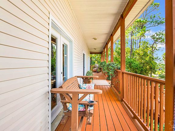 The whole of Gorham Road feels like old Florida and you have found your natural oasis hidden away on Innerarity Point with mature trees and some water view of Garçon Bayou while also affording convenient walk or bike access to restaurants, live music venues, Publix, CVS, parks, and boat launches. This three bedroom three bath home has two separate living areas and a covered wraparound balcony around the whole home. The upstairs has 10 foot ceilings, wood floors in the living area with stone flooring in the kitchen (granite counters, pantry, side board/buffet area, breakfast bar). The master suite includes LVP, walk-in closet and a new oversized tiled, walk-in shower with glass doors, and French doors out to the covered porch overlooking the fenced backyard with blooming bushes for each month of the year and a birdwatchers dream. Downstairs consists of another bedroom, full bath/laundry room, den, and a bonus area currently for crafts. Other nice features include: a whole house generator, oversized garage with a shop area and a garage door to the back yard, instant tankless hot water heater, no HOA, plenty of parking for all your toys! New downstairs HVAC in 2025, Roof is 2020, and the John Deere conveys as is.