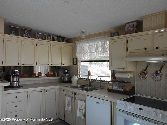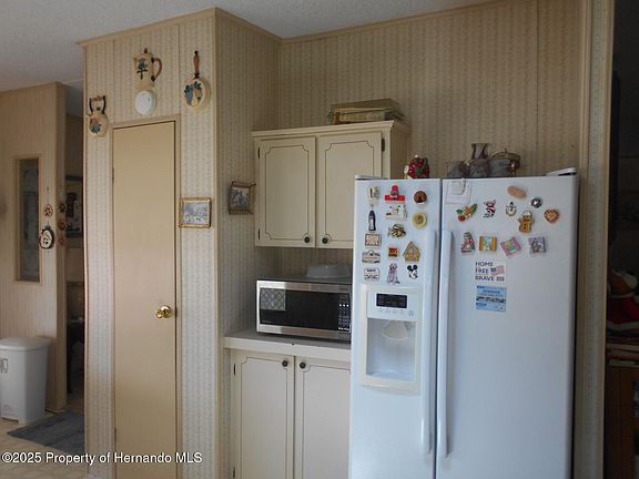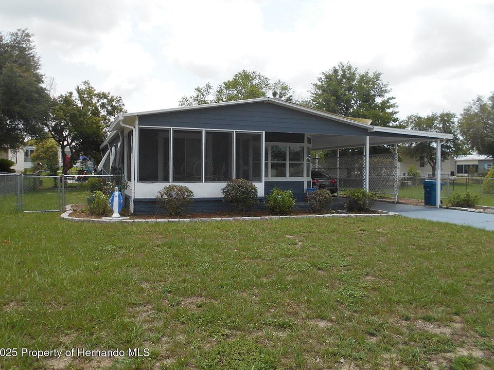 Welcome home friends! This home is freshly redone with all Hardy board on the outside. Along with Hurricane shutters. Very good for when hurricane season coming. Great protection. It has a front screened porch great for having some pie with your neighbors. When you enter you come thru the side into the mud room. left of the home is the eat in kitchen with bay windows, and Living area. There is also a formal dining area if you wish. To the right is the guest room and bathroom good size and the master is also right. It features a bathroom with a garden tub or stand-up shower. Also in master is a wall-to-wall closet. Cathedral ceilings. Laundry is the shed. Has a fenced yard and is located on a lot in a half! a must see. so come on down and enjoy the sun in the Brookridge community for $75 a month you own your own land.