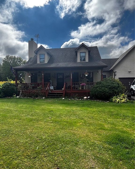 Come enjoy what this beautiful contemporary/Cape Cod home has to offer. Home features, 3/4 bedrooms, 2 1/2 baths, living room with wood burning fireplace, fist floor bedroom suite, with separate shower, Jacuzzi tub, walk in closet formal dine, bamboo flooring, enjoy your nice country eat in kitchen, pantry, high speed internet, heated bonus room above the garage with office, can be many things, each upstairs bedroom has 2 good size closets, plenty of storage even walk in attic space east access. a 4th bedroom, rec room, family room, check out your full dry basement, easily finished even has woodstove, forced air heat with central AC, just wander outside to your nice covered front porch with ceiling fan or just go out back on your private deck enjoy your hot tub or above ground pool, all on over 2.46 acres don't forget your 2 car attached garage, with black top in front of garage, new crusher run driveway
