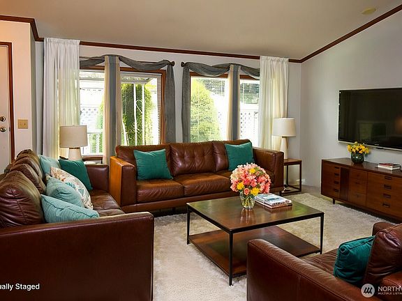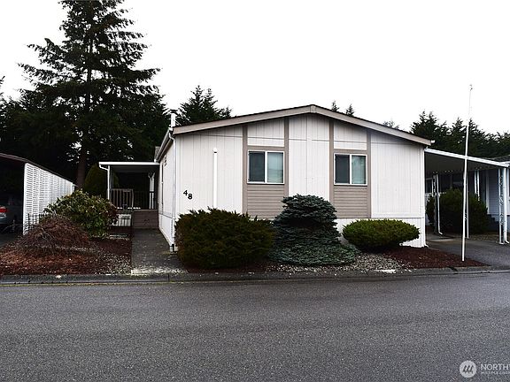 Desired 55+ Fairway Estates gated mobile park, 1782 sqft, 3 bdrms, 2 full BA & new carpeting! Open kitchen w/ island, skylights, pantry & plenty of storage. Dining room & addt'l family room w/ new certified clean-air wood burning stove. Built in sound system, mini-split heat pump w/ AC. Sub panel wired for generator, newer front deck & stairs, Tuff Shed, carport with room for 2 cars. Mounted 85" TV in living room & new washer/dryer convey! Trees for privacy. Community has a clubhouse, fitness center, library, pond w/waterfall & many other activities. Low maintenance yard & minutes to shopping, dining, Boeing, Paine Field Airport & Walter E Hall Golf Course. Check out Virtual Tour. Ask me about a lender that will qualify most credit scores.