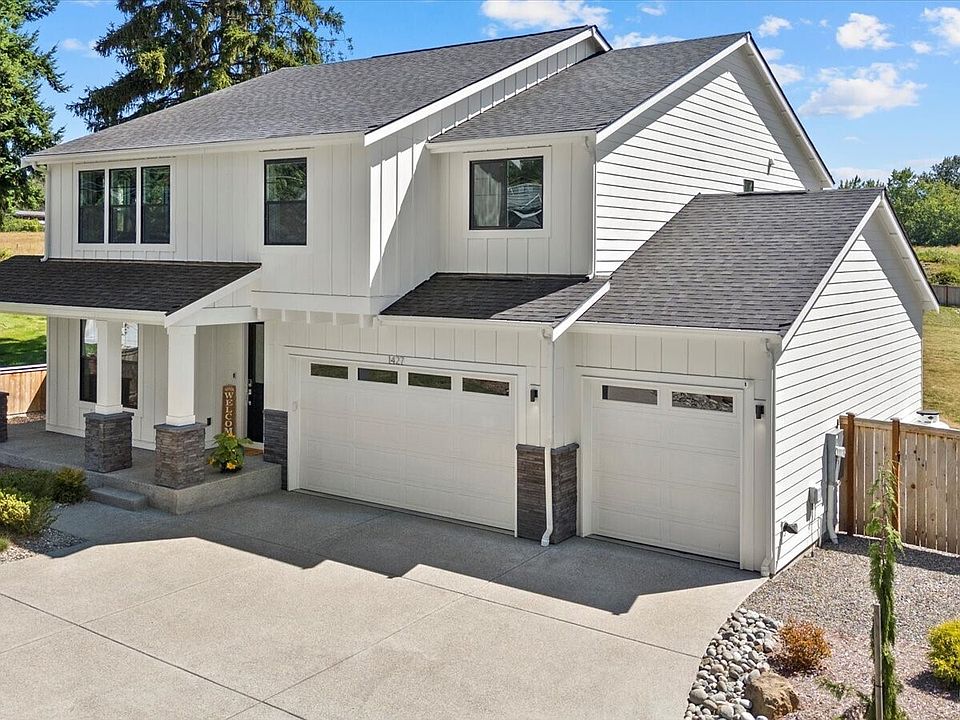 Don’t miss your chance to own this stunning modern luxury farmhouse. Designed with upscale finishes and sleek black-framed windows, this home is the perfect blend of style and comfort. Featuring high-end appliances, elegant quartz countertops, and custom details throughout. The expansive primary suite features dual oversized walk-in closets and a spa-inspired 5-piece bath with a soaking tub. A main-level bedroom with a walk-in shower offers flexibility for guests or multi-generational living. 4 spacious bdrms, a dedicated office, and a large bonus room. Enjoy outdoor living year-round on the covered patio with overhead heaters. Situated on over 1/2 acre this property offers endless possibilities in a highly desirable Edgewood location.