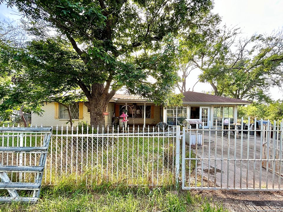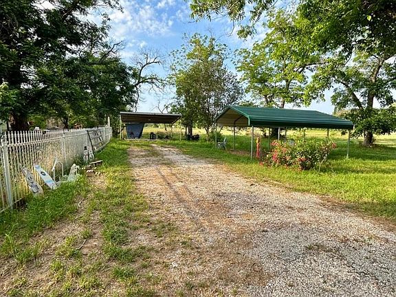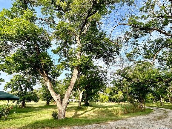 Wonderful mature pecan trees on 5.37 acres. Beautiful solid home made of brick along with a metal roof. This 3 bedroom, 2 bathroom home has city water, 2 eating areas, fireplace, and a covered garage makes a wonderful game room. There are shed/buildings, both with electricity. There is also a great pond 90'X40' about 6' deep originally feed with BMA watering rights or yard well. Great opportunities with this property, also available with USDA loan. No City Taxes, No HOA. Livestock Welcome! Just 5 minutes from HEB, schools, restaurants, etc. Paved road frontage.