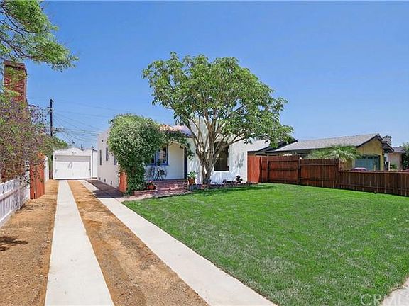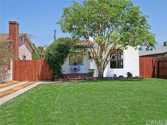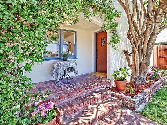 Welcome to this charming Spanish home on a tree lined street. Enter the home through the oversized brick front porch. From the original wood floors to the coved ceilings, you can feel the authenticity. The living room has lots of natural light coming from the large picture window. Off the living room is the dining area that boast original built-in cabinetry and display case. Kitchen has new quartz counters and backsplash with a double stainless-steel sink and new flooring. Exit the backdoor to a secluded grassy yard and patio, perfect for California dining and entertaining. All landscaping has been meticulously planted and cared for by the owners. Bonus - Large two-room structure with utilities is attached to the garage. New paint interior and exterior, new sprinklers, new flooring and so much more. This is a wonderful opportunity that will not last!