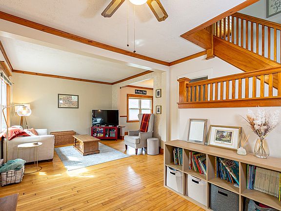 Welcome to this timeless 3-bedrm home, rich with character & warmth. Gleaming wood floors grace the living & dining rms, with charming nook in living area that offers perfect space for home office or play corner. Original woodwork & crown molding add character throughout. Large kitchen overlooks the backyard.Updated windows bring in abundant natural light. Convenient first-floor full bath. Find 3 BRs up w/walk-in closets, 2 showcasing striking wood ceilings. Built-in cabinetry, central air, & newer furnace provide comfort & functionality. Appliances (refrigerator, microwave, stove) are included. Outside, enjoy privacy fence & 1.5-car garage, all in a desirable location near schools and Menominee Park. Showings begin 8/30/25. Seller's preferred closing date 10/15/25 w/3 days post-occupancy