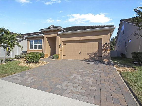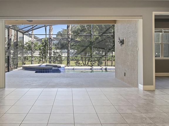 Welcome to this beautifully maintained, one-owner custom home that truly has it all. From the moment you enter, you’ll appreciate the exceptional quality and craftsmanship, including upgraded 8' interior doors, 10-foot ceilings, crown molding, and elegant tray ceilings throughout—even in the primary suite. One of the home’s most impressive features is the expansive 16-foot pocket sliding glass door that creates a seamless indoor–outdoor connection, making your private backyard oasis feel like a natural extension of your living space. Step into the custom heated pool with built-in spa, finished in luxurious PebbleTec, and enjoy the tranquil waterfall cascading from the spa into the pool. The entire screened-in lanai is surrounded by lush landscaping and enhanced by a striking outdoor LED lighting system. The fully fenced backyard overlooks a generous greenspace that enhances privacy and creates an ideal setting for pets, entertaining, or unwinding. TV wall mounts are already installed inside and on the lanai, ideal for watching the game or unwinding by the pool. The upgraded kitchen is a chef’s dream, featuring premium finishes and a gas stove, while the open-concept living area offers an inviting space for everyday living and entertaining. All bedrooms feature recently upgraded flooring, and the primary suite includes a large walk-in closet and a spa-like bathroom with a luxurious rain shower head. The home is outfitted with numerous upgrades for comfort and convenience, including motorized blinds on the sliding glass doors, ceiling fans throughout, dimmer light switches, and a full security system. Fresh interior paint including all doors adds a crisp, updated feel to every room. Practical features include an interior storage room, a tankless water heater, and a full sprinkler system covering both the front and backyard. The home also comes prewired with plumbing, gas, and electric for a future outdoor kitchen, offering excellent potential for expanded outdoor living. The garage is exceptionally functional, featuring a 240V EV outlet, a dedicated golf cart parking space, added shelving, and attic storage for additional organization and convenience.