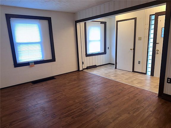 This bungalow home offers a versatile floor plan with a living room, two bedrooms, and a home office on the main level. The entry way has a closet and some extra storage. Nice sized living room! Downstairs to the walk-out basement featuring the kitchen (with stove and refrigerator), dining area, and full bath, along with a spacious mechanical/storage room. A detached 2-car garage is located across the street. This would be a great investment/rental opportunity! Hopewell Area School District.
