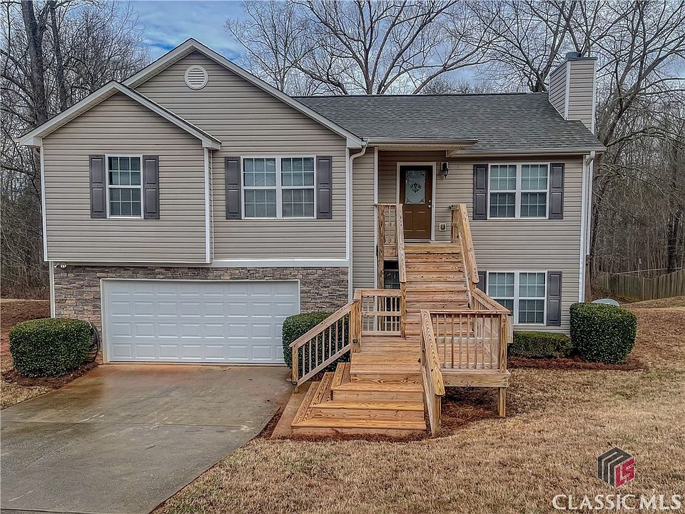 Come view this spacious 4 Bedroom/3 Bath Split Foyer Home with a 2 car garage nestled in Princeton Estates! This well maintained home features additional flex space that can be used for an office, gym, greatroom or additional bedroom space. The location of this charmer offers convenient accessibility to HWY. 316, HWY 29 and HWY 211. Crafted with a eat in Kitchen/Breakfast area with white cabinets and stainless steel appliances, Cozy family room with fireplace, Master Bedroom with Trey ceilings, walk-in closets, garden tub and several other updates which allows for you to make this your cozy home. We have some major enhancements featured in this home. New Roof installed in 2022, HVAC units for both levels, hot water heater, rebuilt deck and front porch, freshly painted interior, updated light fixtures and much more!! Fantastic outdoors space that's over 1 acre and perfect for those family gatherings. This beauty has No HOA!! 1 year warranty included.