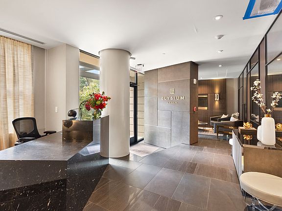 Waterworks fixturesSleek lobbyThermador and bosch appliancesBlackout featureLarge windowsAutomated custom blindsCalcutta quartz countertops
