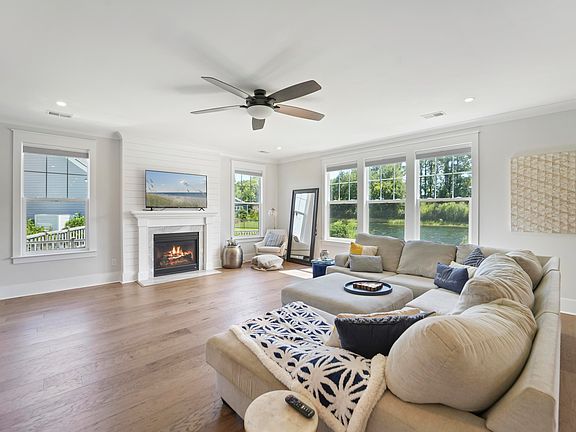 Welcome to 1427 Rivers Cotton Road! This stunning custom built 5 Bed/3.5 Bath Prescott floor plan property offers 3,434 sq ft of turn-key living space and is perfectly positioned on a premium pond lot in the highly sought-after Bennett's Bluff neighborhood on James Island. Amazing indoor/outdoor living spaces with stunning pond views and endless custom designer finishes throughout!Step past the covered front porch into the foyer and immediately notice the wide-plank hardwood floors, crown molding, and detailed trim package that flow throughout the main living areas. Just off the entry is a lovely home office/media room with glass-paneled French doors. Just down the hallway you will find a formal dining room with a coffered ceiling and butler's pantry with coffee station and bar arealeading into the gourmet kitchen. The kitchen is a chef's dream and features a large center island with bar seating, quartz countertops, stainless steel appliances, tiled backsplash, double ovens, and a 6-burner gas cooktop all overlooking the water! From here, the open-concept floor plan is on display leading into the spacious living room. The living room boasts sweeping pond/backyard views and a gas fireplace accented by shiplap for the chilly months! Directly off of the living room step outside to the screened in porch and patio area that overlooks the backyard/pond and provides the perfect place to enjoy your morning coffee and observe the abundant birdlife on the water! Upstairs, the primary suite offers a tranquil retreat with a tray ceiling and expansive pond views. The spa-like en suite bath features dual vanities, an oversized custom tile walk-in shower with built-in bench/shelving. There is also a large custom walk-in closet that includes built-in drawers and shelving and an additional closet for storage. There are 4 additional good sized bedrooms upstairs for guests/family. One of the large bedrooms can also be used as an upstairs living room, game room or theatre. Two additional bedrooms with large closets and great natural light and another true guest room bedroom with private en suite bath complete the second floor. A large hall bath and full laundry room are directly off of bedrooms for convenience The property also offers a 2-car attached garage with plenty of room for your cars/toys and additional space for storage or a workshop area. Just inside the two-car garage there is a custom-built drop zone with bench and shelving/storage. Bennett's Bluff offers residents a boutique waterfront lifestyle with fewer than 90 homes, sidewalk-lined streets, and amenities such as a community dock on Clark Sound with kayak launch, playground, picnic pavilion, and grassy common areas. Direct access to the Bayview Soccer Complex adds even more recreation right next door. This prime James Island location is just minutes to Downtown Charleston, Folly Beach, top-rated schools, parks, shopping, and world-class dining. Don't miss your chance to see this amazing property before it's gone!