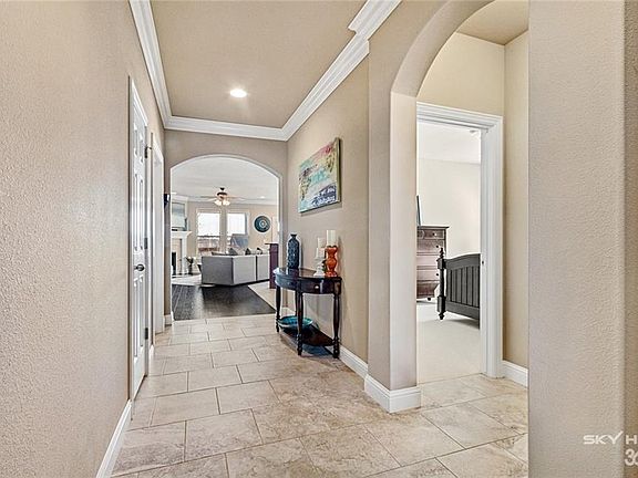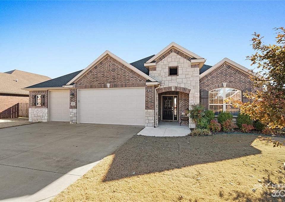 **BACKS UP TO UNDEVELOPED ACREAGE AS FAR AS THE EYE CAN SEE** Meticulously cared for inside and out, this gorgeous light washed stone and dark brick home sits on a flat lot that backs up to several acres of undeveloped, private land. Enjoy the comforts of town with a back deck view of the country. Home has been gently lived in, boasts natural light in every room, varying flooring throughout, plus high end appliances. Interior feel is made complete with open floor plan in kitchen, dining, and living areas with luxury finishes and multi level kitchen island/breakfast bar. The warmth of the fire place in living area can be enjoyed from the kitchen and dining space. Master suite contains floor to ceiling walk-in closet, his and hers sinks, and spacious tile standing shower with bench seat. Back deck is slightly elevated, allowing space for grilling and hanging out while enjoying the view over a fully privacy-fenced back yard. 3 car garage and covered front entrance make for convenient arrivals and departures.