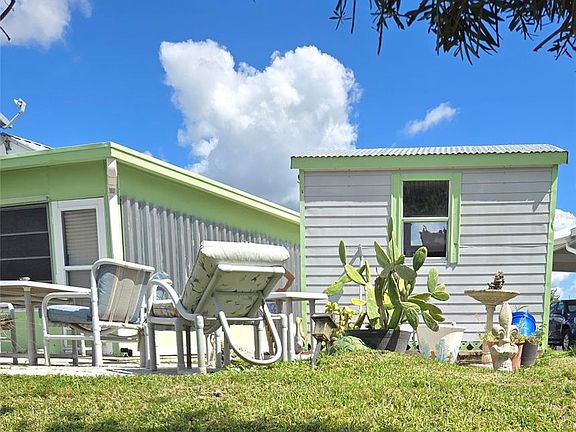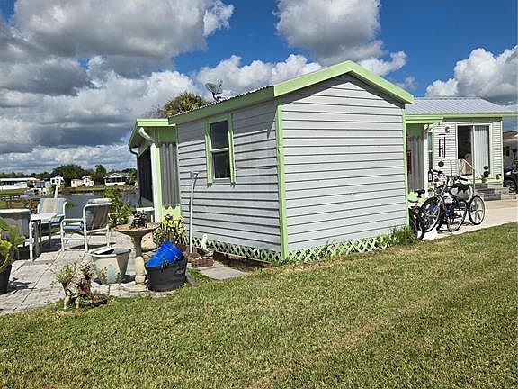 Lakefront 2/1 Home in 55+ Community Cozy, freshly painted and well-kept, this furnished 2 bed/1 bath home features lake views, a private dock, paver patio, and 2-car concrete driveway. Includes a shed with electricity and a golf cart! Enjoy peaceful living in a friendly 55+ community with amenities that include an Executive Golf Course, Swimming Pool, Clubhouse, Petanque Courts (league and tournament play), Pickleball Court, Fishing Lakes, Boat Launch and Parking Area, Fish Cleaning Facility, Pool Tables, Shuffleboard Courts, Screened Lanai, Clubs, and Arts and Crafts Classes, Card Games, Horseshoes, Hiking Club, Dinner and Dance Nights, Poker Run, Parades, Fishing Tournaments, Men’s, Ladies and Couples Golf Leagues, Laundry and Showers not to mention good neighbors!