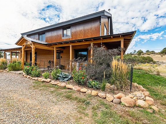 A Colorado Mountain Sanctuary with HUGE La Plata Mountain Views. Located only 15 minutes from downtown Durango, this 1,960-square-foot modern farmhouse is perched on 15.1 acres, bordering 160 acres of Southern Ute land. Offering unmatched privacy and breathtaking views of the La Plata Mountains and Black Ridge, this impeccably maintained property is the perfect blend of rural serenity and modern convenience. Built in 2001, this home has been thoughtfully updated and cared for, boasting recent improvements including a new roof, windows, paint, light fixtures with dimmers, and a Vermont HearthStone fireplace. You will be immediately attracted to the model-home like interior with functional floor plan complete with new flooring throughout (wood, tile and LVP), custom Alder trim, antique touches include a Mayday vintage farmhouse sink, Victorian windows, a vintage butcher cabinet, guest bathroom door, and a vintage mantle. The charming kitchen features a new appliance package, island with wine fridge and veggie prep sink, vintage butcher cabinet, and decorative ceiling panels. A spacious guest bedroom (could double as a main level suite), full bathroom with a utility/dog wash station, and a separate laundry room with additional storage is conveniently located off of the kitchen. There is a unique dog room located under the stairs for your furry friends.Upstairs, the versatile second living area is ideal for an office, library, or exercise room—with the potential to create a third bedroom if desired. Stunning reclaimed barn wood and hardwood floors, along with huge picture windows framing the La Plata Mountains. The large primary suite with a soaking tub, double shower heads, double vanity, and radiant in-floor heat will not disappoint. Outside, the property is set up as a mini-farm with features perfectly suited for gardening, animals, and outdoor enjoyment. Farm amenities include two custom chicken coops with multiple divisions; raised and in-ground garden beds and a separate fenced garden area. Two-sided animal shelters with a shared central fence line and four divided paddocks with solar-powered electric fencing. Two greenhouses, including a Polly panel greenhouse with a steel frame and decorative Victorian roof. Custom welded panel and steel post dog run with pea gravel. Active composting bins and three apple trees, including one mature tree producing three bushels annually. Additional features that enhance this home are three sheds (one with electrical) and a wood shed; RV parking with hookups (not currently in use). New rock hardscaping, perennial landscaped beds, and multiple outdoor entertaining spaces, including a concrete patio and a flagstone patio. The wraparound porch offering breathtaking views, vibrant sunsets, and serene sunrises. Energy efficiency with radiant floor heating, tankless water heater (2019), and low energy bills. Utilities: Central water from Durango Water Authority, Basin Coop propane, community trash pickup, excellent internet, and reliable cell service. Eco-Friendly Features: Active composting bins, rain barrels, and fire mitigation in place. No HOA or Covenants: Freedom to live the Colorado mountain lifestyle your way. This property is more than a home—it’s a personal sanctuary. From hiking and gardening to relaxing on the wraparound porch, this residence offers unmatched tranquility with the convenience of being just minutes from the heart of Durango. Experience the beauty of mountain living with stunning views, abundant wildlife, and room to explore—all in one incredible package. Don't miss the video and 3D virtual tour. Schedule your private showing today!