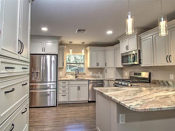 Wonderful 3/2 home located in Anthony, FL. Home sits on 3.51 acres of beautifully shaded acres with tons of extras. The main home was built in 2023. The kitchen has all stainless-steel appliances, solid wood soft close cabinetry and stunning stone countertops. The living room dining room combo area has a stone-faced gas fireplace and French doors to the covered screened in patio with plenty of natural light. The home has a indoor laundry room with stackable washer and gas dryer. The primary bedroom has a large walk-in closet with built-ins and a wonderful ensuite that has double vanities and a luxurious walk-in shower. It also has French doors that lead to the patio with outdoor shower and screened-in above ground pool with wood deck. The outdoor patio also has a wood burning fireplace for the cool nights. There is a guest bathroom and 2 quaint guest bedrooms. One guest bedroom also has a pocket door with access directly to the guest bathroom. On the property is one 300 sqft tiny home with own septic perfect for guest house or rental income. There is also another 600 sqft insulated building ready to be renovated into a 2nd tiny home with running water and A/C, currently being used as a workshop with lots of storage and counter space. There is a huge 40 X 60 foam insulated steel building that could have many uses, which 40X40 is enclosed. Bring the RV's also, with a large steel RV port for storage with room for 2 RV's under cover. There also 2 electric RV hook ups on the property with own septic that offer other income opportunities. By the main house is a outdoor screened in area with lighting and outdoor kitchen and gathering area perfect for entertaining with air-conditioned office area and dog kennel. The dog kennel has AC indoor area and outdoor fenced areas, another income opportunity! COME TAKE A TOUR!